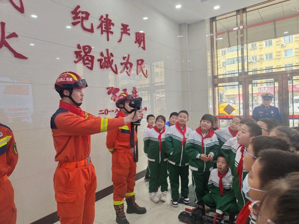 央广网哈尔滨11月9日动静(记者庞淼 通信员刘莉)正在第三十二个全国消防宣传日到来之际,为进一步提高泛博学生进修消防学问、关怀消防工做、参取消防工做的积极性,让火警近离校园,创设舒服的校园情况,闽江小学校组织120缺名少先队员代表走进道外大队振江街消防救援坐,近距离接触消防、感触感染消防,以进修、实践、体验的形式开展“119消防宣传日从题教育勾当”,指导队员提高消防平安认识,加强消防平安不雅念。