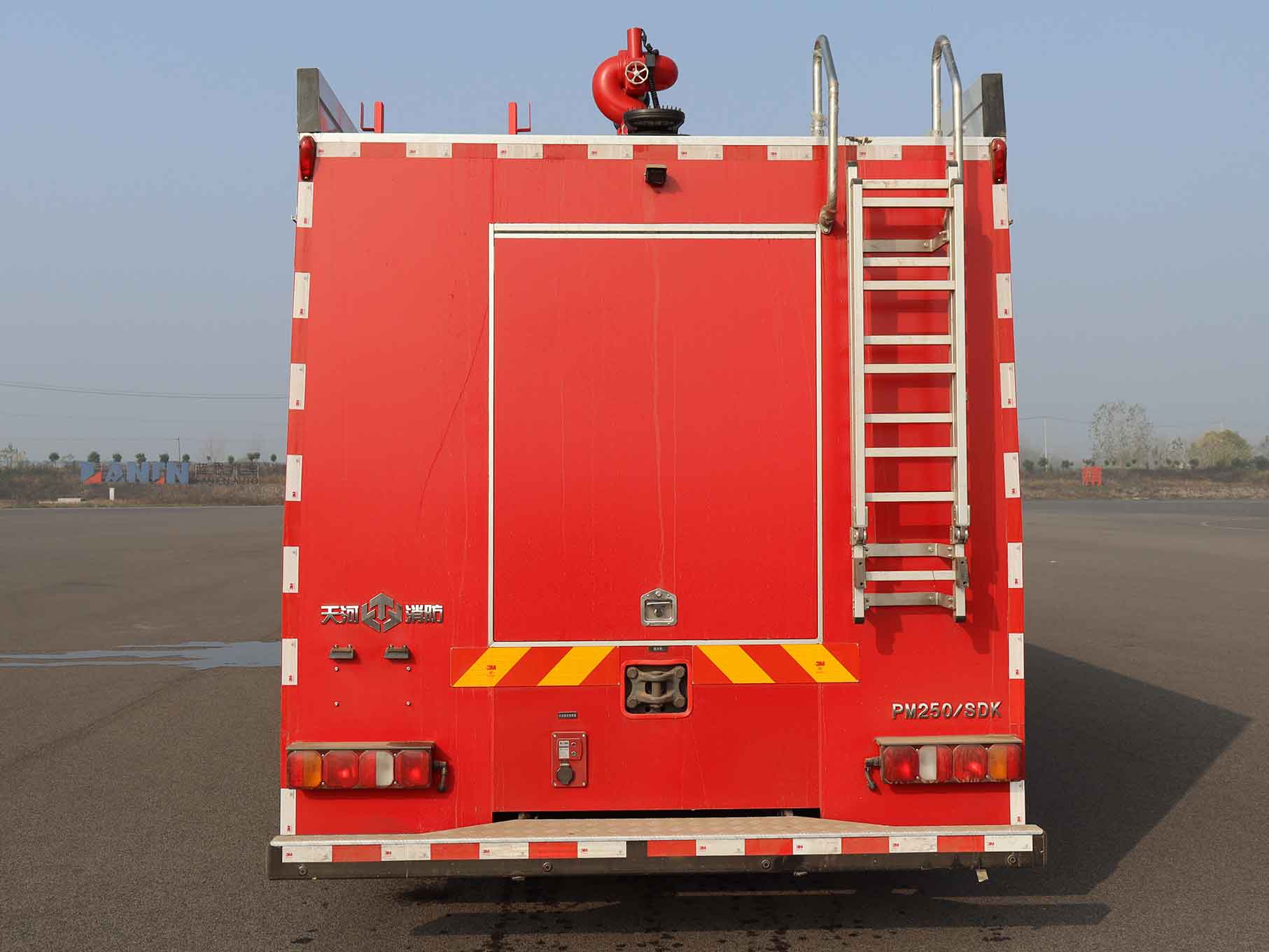 罐体分容积为25.000立方米,水罐容积:20.000立方米,水罐尺:5840×2400×1490mm,泡沫罐为“凸”形罐体,泡沫液罐容积:5.000立方米,泡沫液罐前端尺寸:990×1240×1490mm,泡沫液罐后前端尺寸:950×2400×1490mm。全体式侧防护布局,后防护安拆材料:Q235A,截面尺寸:80×120mm,取车辆毗连体例:螺栓毗连,后防护离地高度:380mm,EBS出产企业为采埃孚商用车系统(青岛)无限公司,型号为EBS3。次要公用安拆无消防泵、消防炮。