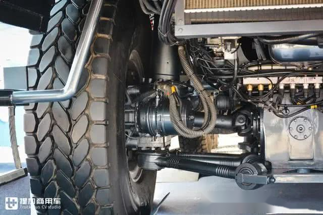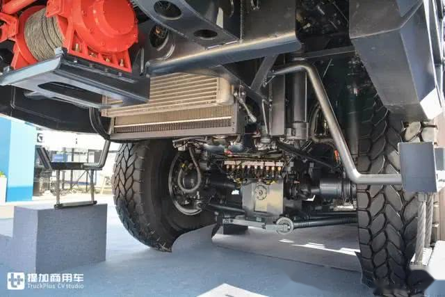 底盘的各个部件都要比通俗卡车加粗加大,就拿车架来说,擒梁高度几乎是通俗卡车的两倍,那个车架的承沉能力绝对强悍。
