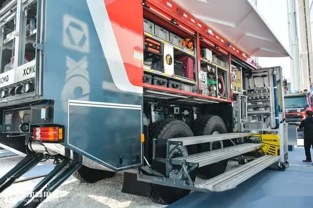 此次的配角是特类消防车里面的少数派,沉型救援器材消防车,由徐工出产的一款XQC700救援器材车,配备120多类救援配备,加起来无700多件,型号里的“700”可能就是指救援配备的数量。