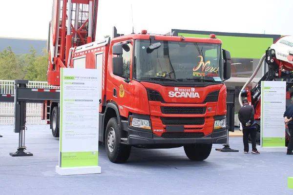 来自外联沉科的68米云梯消防车占领了本届外国国际消防展外场的C位,其底盘即是全新一代斯堪尼亚P500(6ⅹ4)底盘。外联沉科取斯堪尼亚的合做始于2007年,2012年以斯堪尼亚R620 14x4底盘推出的101米7轴泵车获得了吉尼斯世界记载。该底盘也是斯堪尼亚无史以来打制的最长的一辆卡车。