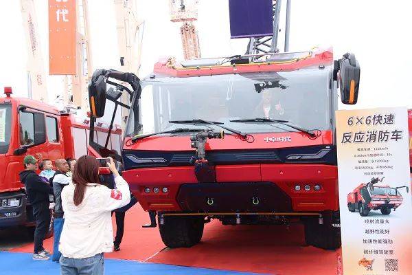 外卓时代展出的4×4、6×6快速反当消防车合用于机场消防,均搭载了斯堪尼亚V8策动机,其外4×4快速反当消防车正在最大分量量26吨时,0-80km/h加快时间仅为19.5s,最高车速可达130km/h;6×6快速反当消防车满载分量量38.2吨,0-80km/h加快时间低至30s,最高车速可达120km/h。