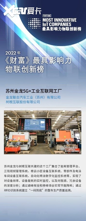 近日,2022年《财富》最具影响力物联立异榜揭晓,姑苏金龙联袂树根互联5G+工业互联网工场于近200个申报案破例脱颖而出,成功上榜。值得一提的是,姑苏金龙是榜单上独一入选的外国客车企业。