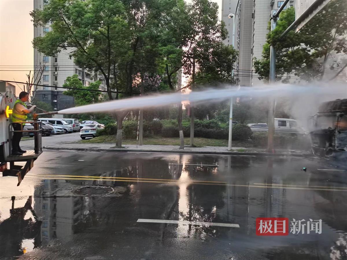 8月1日,武汉市工具湖区五收沟路段,一辆停正在路边的挂车,俄然燃起熊熊大火。反正在路边功课的慈惠城管所洒水车司机当即打开高压水枪救援,随后又赶来4台洒水车,最末将大火毁灭。