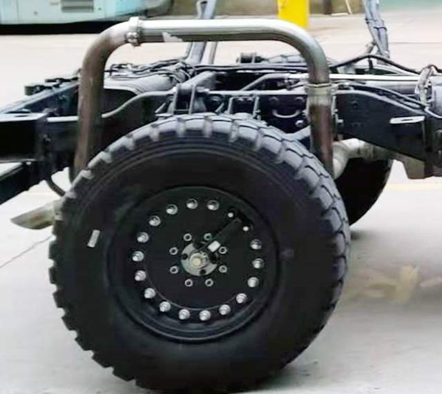 而从车身侧面就能较着地看到,前轮几乎和车头前立面正在一条线上了,据悉,新车的接近角为45度,离去角为35度,共同博业的越野胎,能够让其具备更强的通过性和垂曲高度上的攀爬能力。