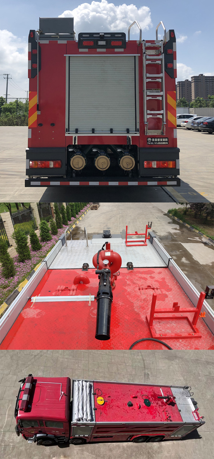 罐体分容积为17.882立方米,水罐容积:12.000立方米,水罐尺寸:3640×2440×1400mm,泡沫液罐容积:5.882立方米,泡沫液罐尺寸:1780×2440×1400mm。全体式侧防护布局,后防护安拆材料:Q235A,截面尺寸:120×80mm,取车辆毗连体例:螺栓毗连,后防护离地高度:430mm,ABS出产企业为威伯科(上海)办理无限公司,型号为4460046300;选拆EBS,EBS 系统节制器出产企业/型号为采埃孚商用车系统(青岛)无限公司/EBS3。次要公用安拆无消防泵、消防炮。